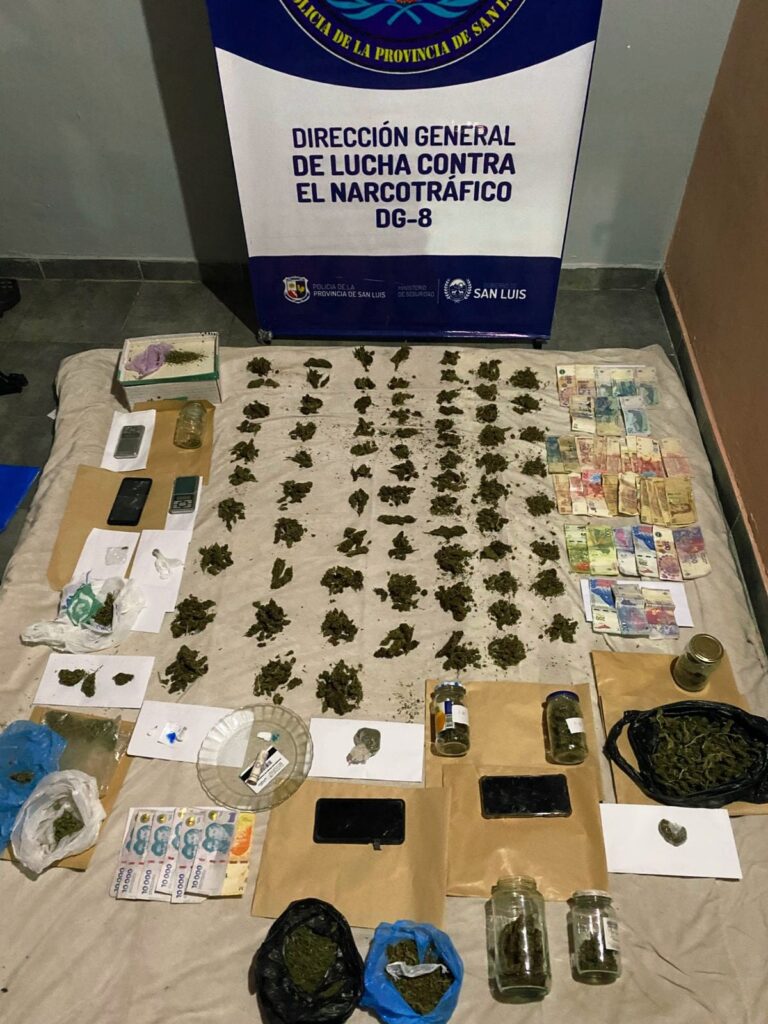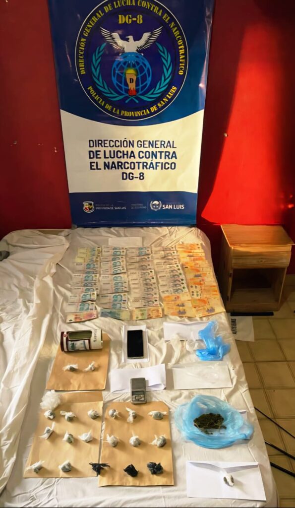 Además, se incautaron cinco teléfonos celulares, tres balanzas digitales presuntamente utilizadas para el fraccionamiento de la sustancia, dinero en efectivo por un total de $384.169 y otros elementos de interés para la investigación.