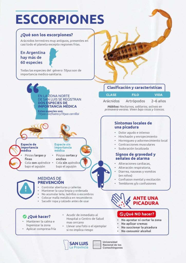 El trabajo fue desarrollado por investigadores de la Universidad Nacional de Los Comechingones y la Universidad Nacional de San Luis, y se materializó en una infografía informativa sobre animales peligrosos, con especial énfasis en la escorpiofauna y su impacto en la salud humana.