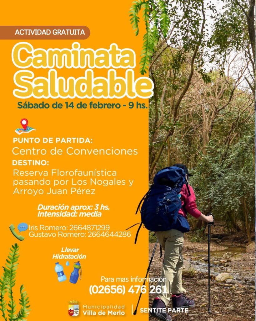 Este sábado 14 de febrero por la mañana, vecinos y visitantes podrán sumarse a una nueva edición de las Caminatas Saludables, una propuesta gratuita impulsada por la Municipalidad de Villa de Merlo que invita a moverse, conectar con la naturaleza y compartir actividad física al aire libre.