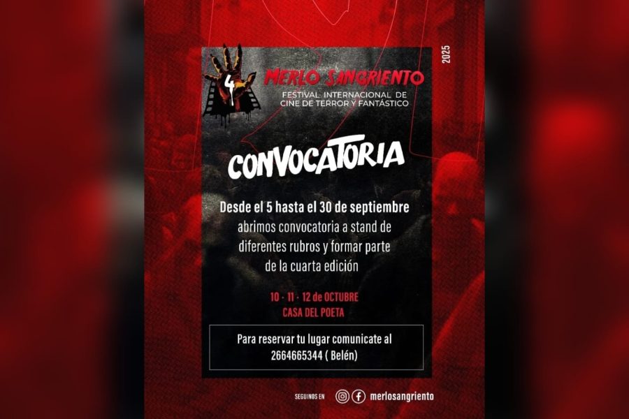 El Festival Internacional de Cine de Terror y Fantástico “Merlo Sangriento” abrió una nueva convocatoria de cara a su cuarta edición, que se desarrollará del 10 al 12 de octubre en la Casa del Poeta Antonio Esteban Agüero.