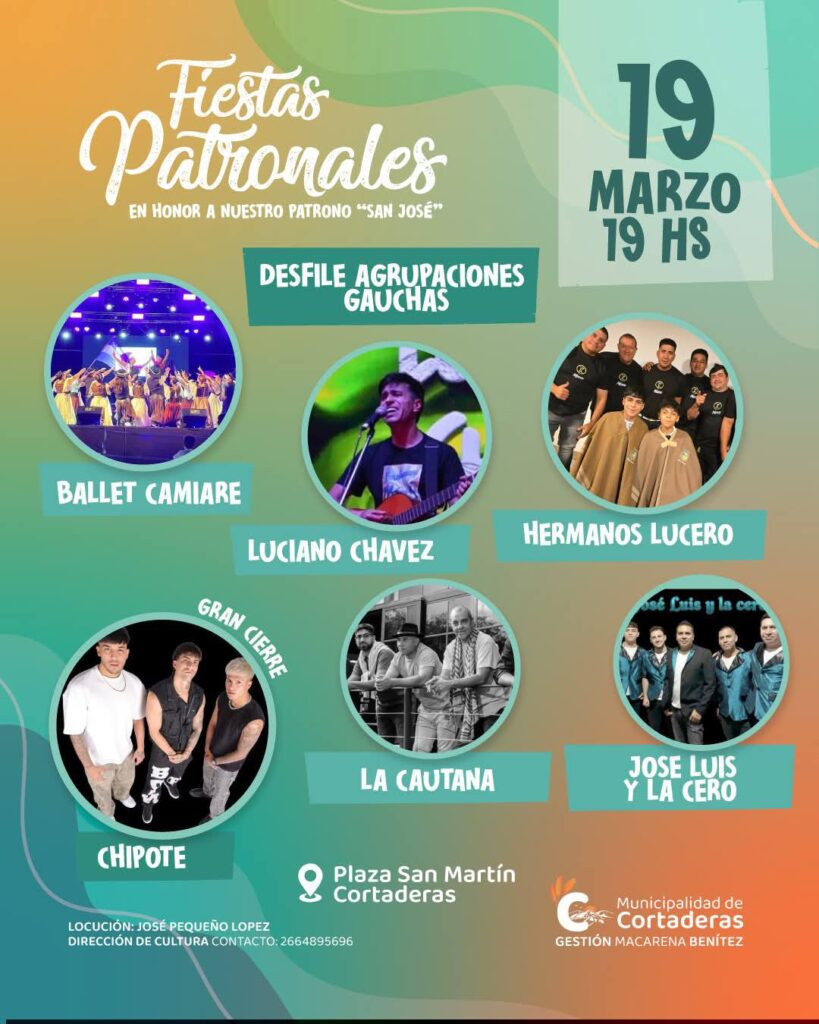 La localidad de Cortaderas se prepara para vivir una de las celebraciones más importantes de su calendario: las fiestas patronales en honor a San José. El evento se desarrollará los días 18 y 19 de marzo y reunirá fe, cultura y tradición en un ambiente pensado para el encuentro de vecinos y visitantes.