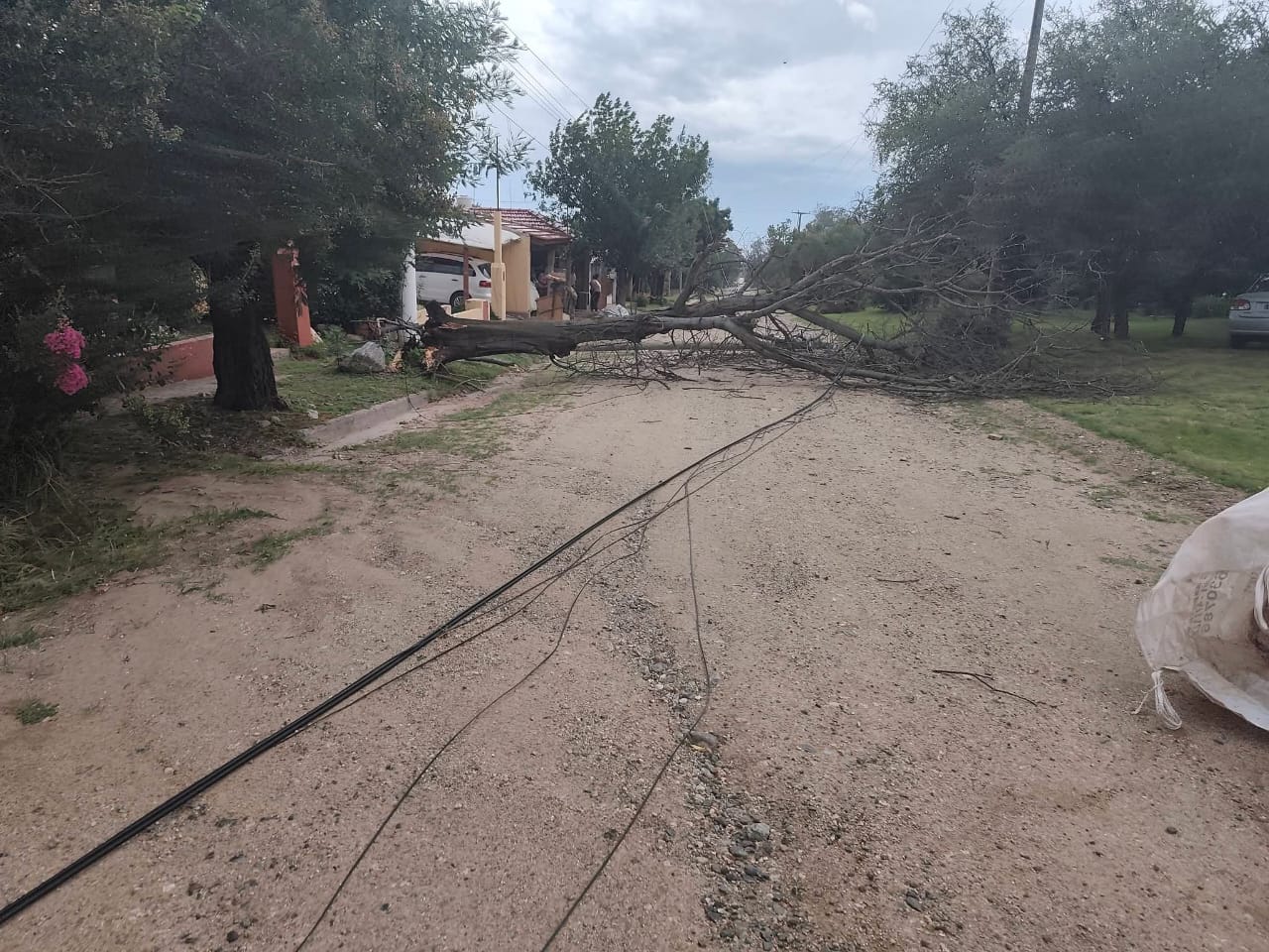 El temporal provocó la caída de un árbol y postes en un barrio de la Villa de Merlo