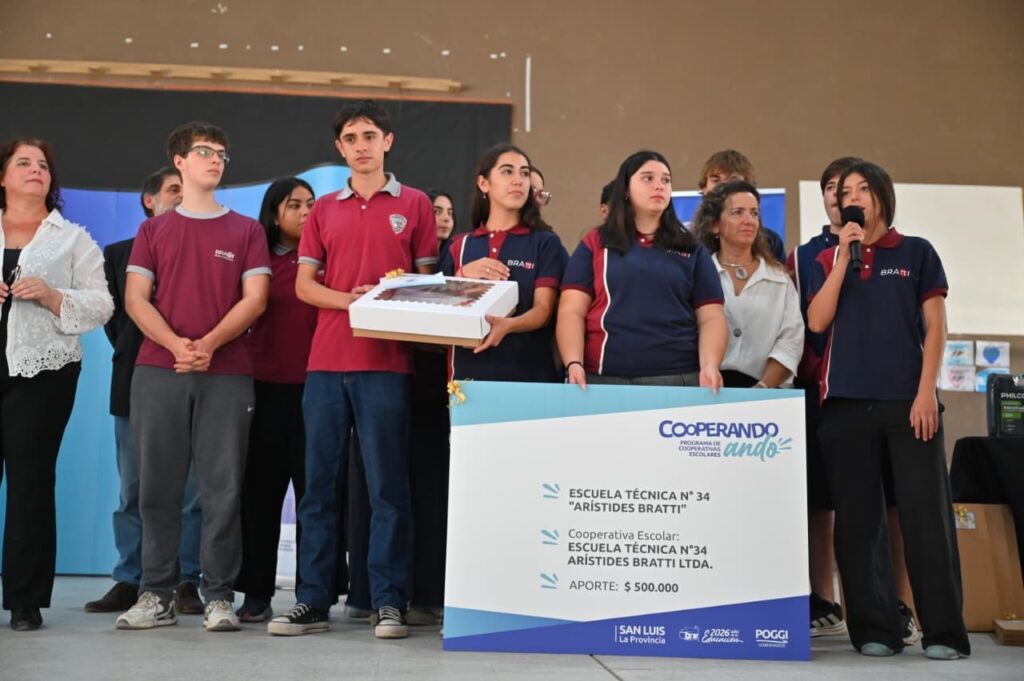 En el marco de la gira institucional, el gobernador Claudio Poggi encabezó en la Escuela Técnica N°34 “Arístides Bratti” una entrega de insumos destinada a cooperativas escolares de la Villa de Merlo, fortaleciendo así el desarrollo de proyectos productivos dentro del ámbito educativo local.