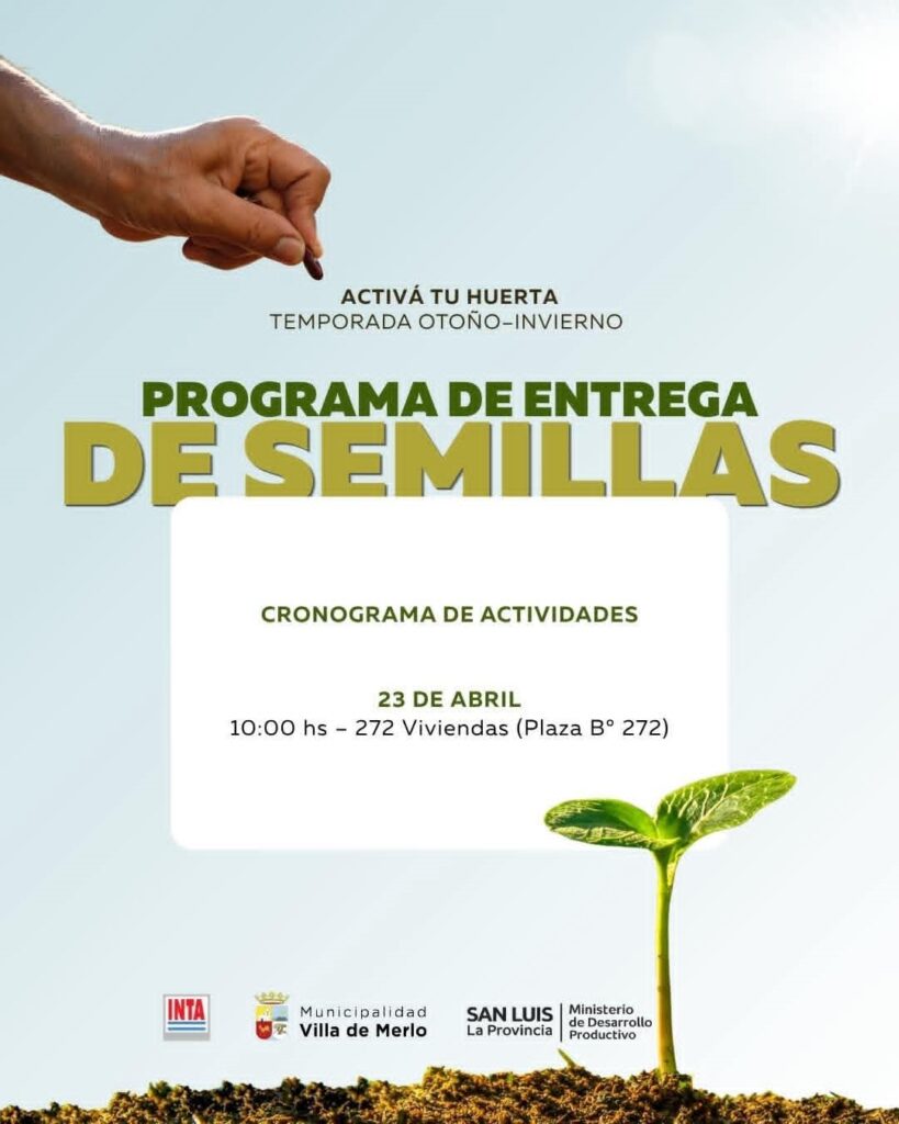La Municipalidad de la Villa de Merlo continúa desarrollando el Programa de Entrega de Semillas – Temporada Otoño–Invierno, una propuesta que busca fomentar la producción de alimentos en casa y fortalecer las huertas familiares en distintos puntos de la ciudad.