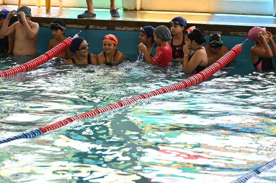 La jornada finalizó con una exhibición en la pileta del establecimiento, que cuenta con 25 metros de largo. Allí, alumnos de la institución demostraron frente al Gobernador los cuatro niveles de aprendizaje que adquirieron durante la edición 2025 del Plan Provincial de Natación, mostrando distintas técnicas que forman parte del programa.