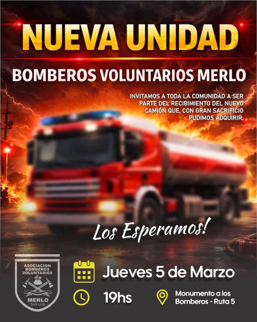 La convocatoria está abierta a la comunidad, en una jornada que busca compartir este paso importante en la historia de la institución y reafirmar el vínculo entre los Bomberos y los vecinos de la Villa de Merlo.