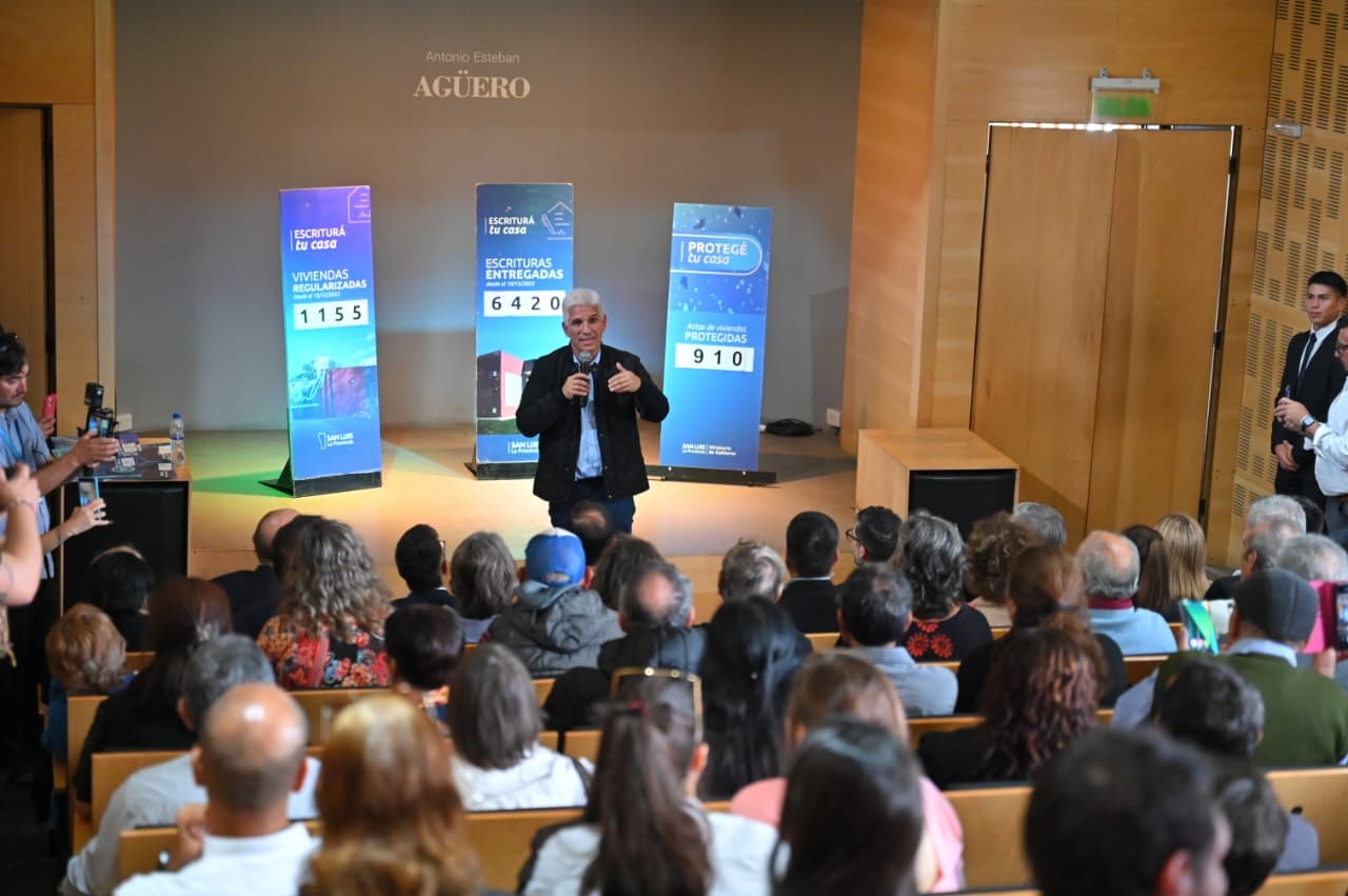 En la Casa del Poeta de la Villa de Merlo, el gobernador Claudio Poggi encabezó una nueva entrega de escrituras y documentación en el marco de los programas ‘Escriturá tu Casa’ y ‘Protegé tu Casa’, beneficiando a familias de la ciudad y de distintas localidades del Valle del Conlara y la Costa de los Comechingones.