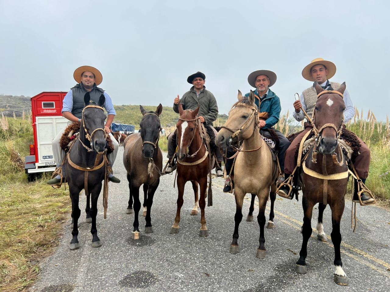 El grupo está integrado por vecinos de la Villa de Merlo que decidieron emprender esta travesía en conjunto. Entre ellos se encuentran Alexis Cuello, Rodrigo Villegas, Cristian García y Marcelo Rueda, quienes realizan el recorrido acompañados por varios caballos.
