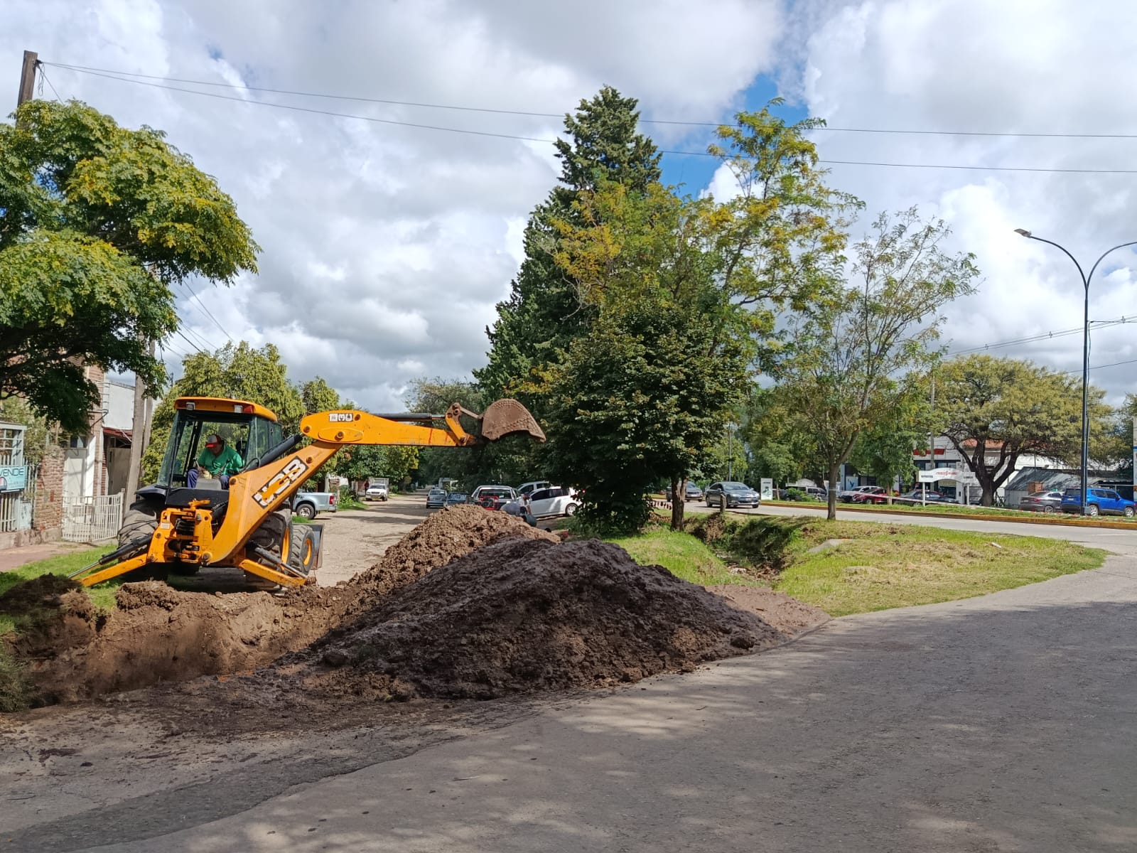 Los trabajos se llevaron adelante en la intersección de la Ruta Provincial N°5 y la calle Rodeo de los Cocos, un sector de alta circulación dentro del ejido urbano. Allí se efectuó el recambio de un tramo de cañería de PVC de 355 milímetros, ubicado a unos 2 metros de profundidad, correspondiente al sistema troncal.
