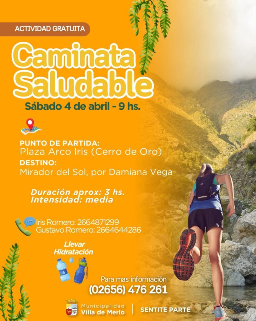 Este sábado 4 de abril, la Villa de Merlo propone una nueva actividad para disfrutar del aire libre y el movimiento: una caminata saludable abierta a toda la comunidad.