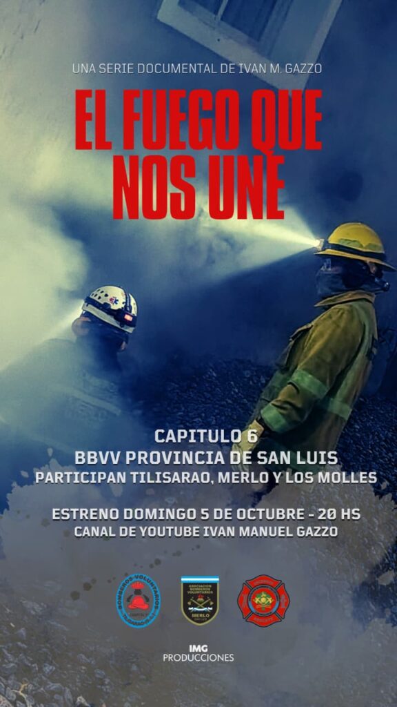 El domingo 5 de octubre, a las 20 horas, se estrenará el capítulo 6 de El fuego que nos une, la serie documental de Iván M. Gazzo que recorre Argentina mostrando de cerca la labor de los bomberos voluntarios.