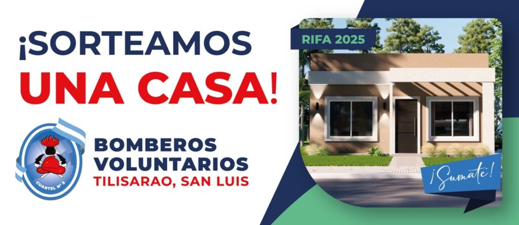 La Asociación de Bomberos Voluntarios de Tilisarao confirmó que continúa en marcha la Rifa 2025, cuyo premio mayor será el sorteo de una casa, previsto para el 8 de agosto de 2026.