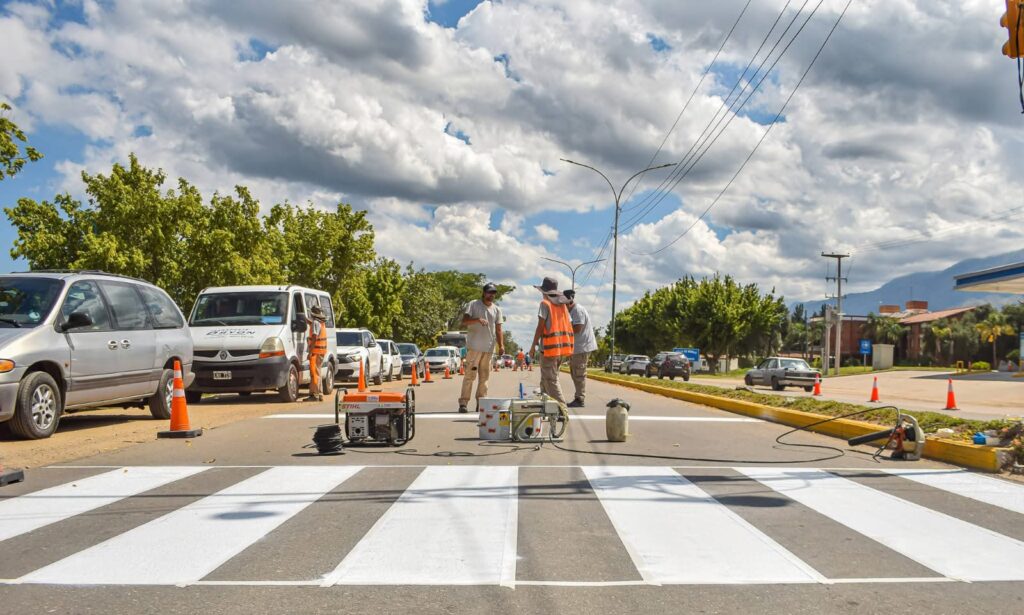 La Municipalidad de la Villa de Merlo avanza con tareas de pintura y señalización vial en uno de los sectores más transitados de la ciudad: la intersección de Ruta Provincial N° 1 y calle Carlos Gardel.
