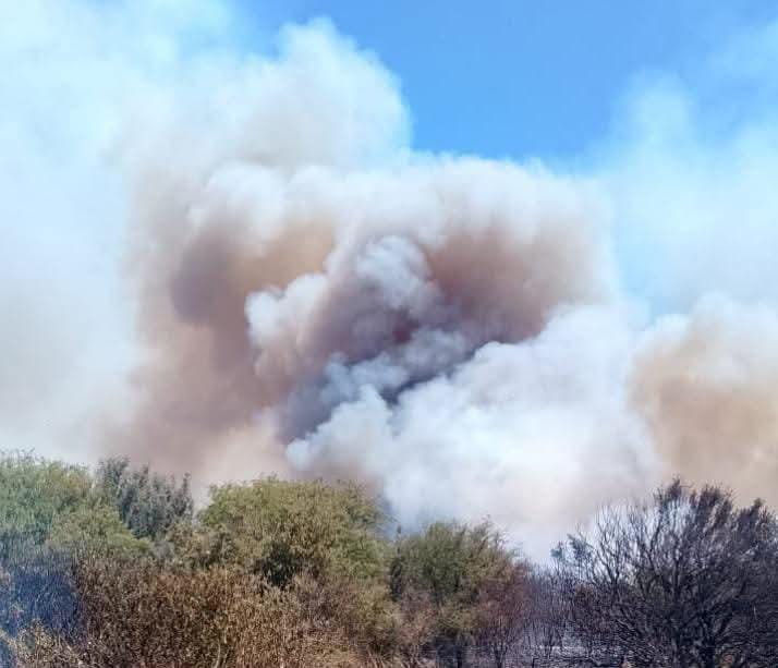 Incendio de gran magnitud afecta la Ruta 6 entre Concarán y Villa Larca: trabajan bomberos de toda la región