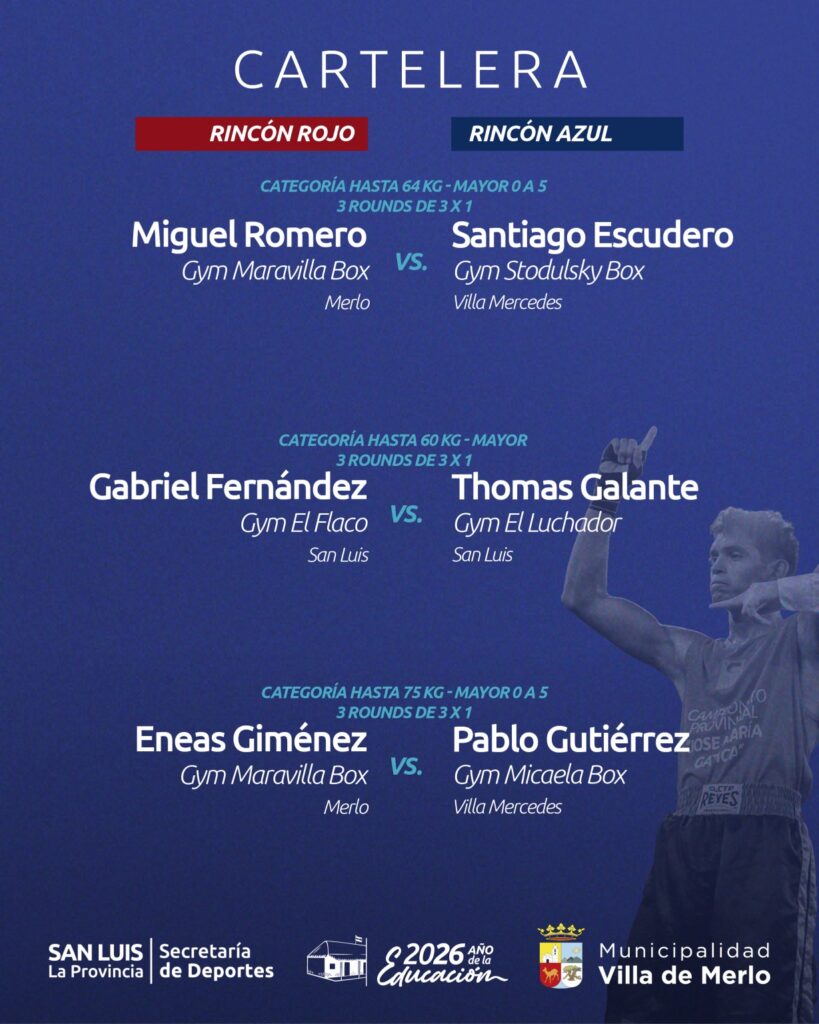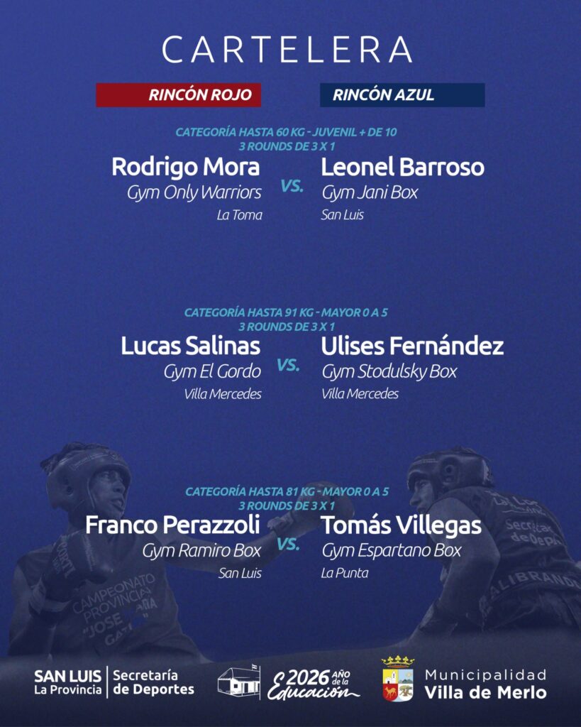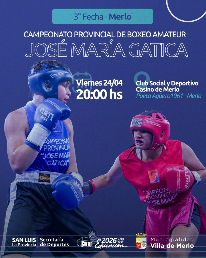 La Villa de Merlo se prepara para vivir una noche a puro boxeo este viernes 24 de abril, cuando se dispute la 3° fecha del Torneo de Boxeo Amateur “José María Gatica”. El evento comenzará a las 20:00 en el Club Casino, con entrada libre y gratuita.