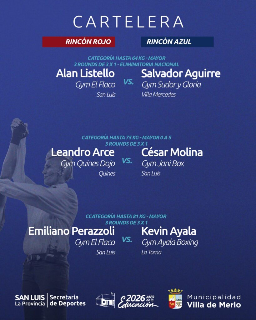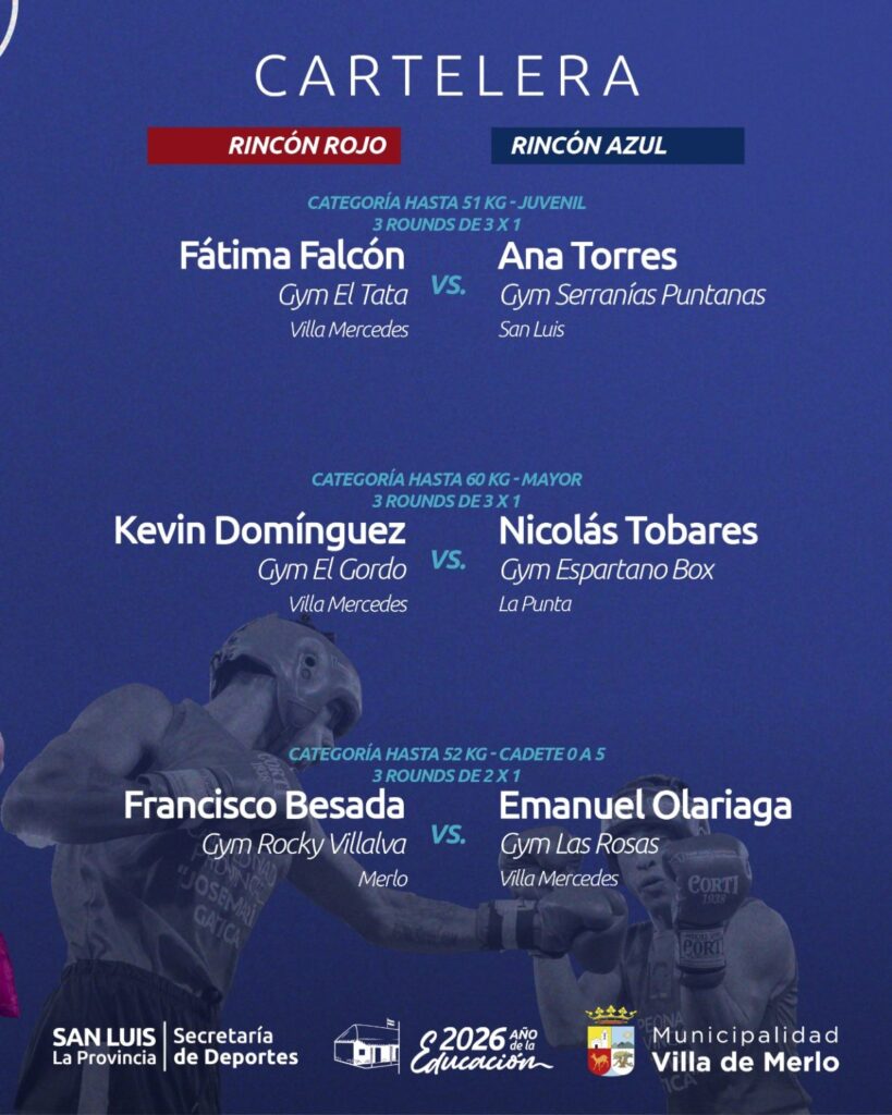 La velada contará con un total de 12 combates, de los cuales tres serán eliminatorias rumbo al Campeonato Nacional de Mayores, mientras que cuatro peleas formarán parte del campeonato “José María Gatica”. El resto de los enfrentamientos serán exhibiciones por fuera del torneo, completando una jornada que promete gran nivel y convocatoria.