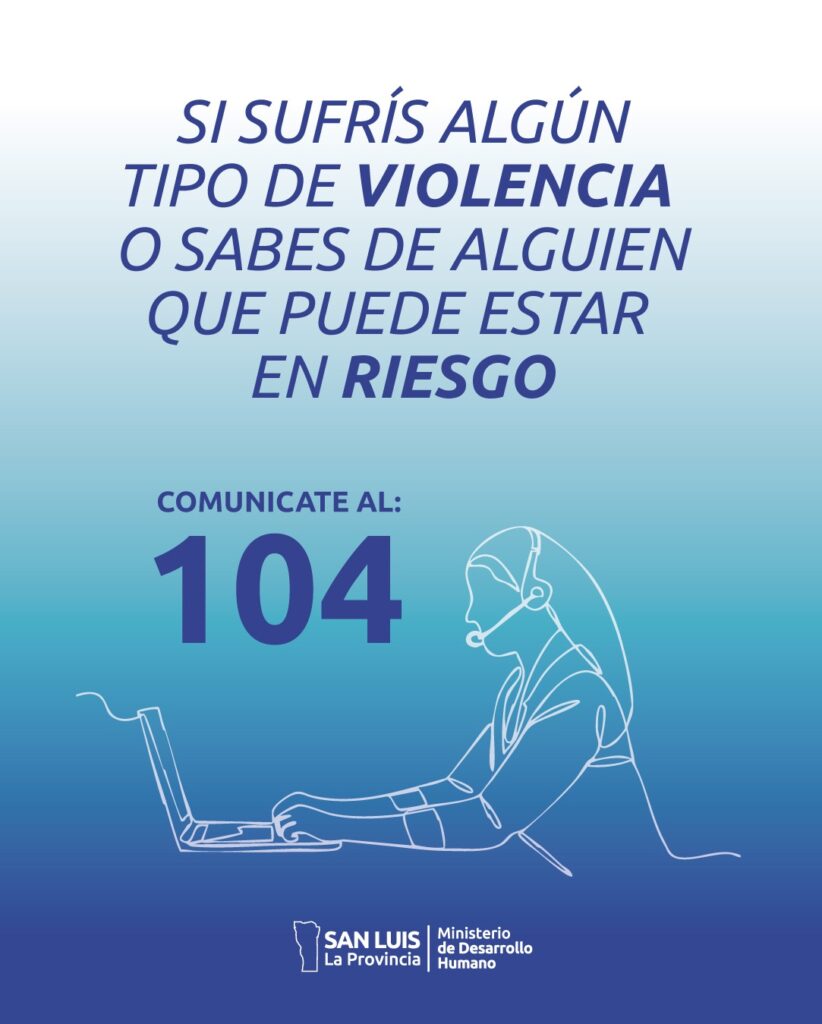La línea 104 continúa funcionando como una herramienta clave para la prevención y asistencia en situaciones de violencia de género. El servicio es gratuito, está disponible las 24 horas, los 365 días del año, y los llamados son atendidos por personal especializado.